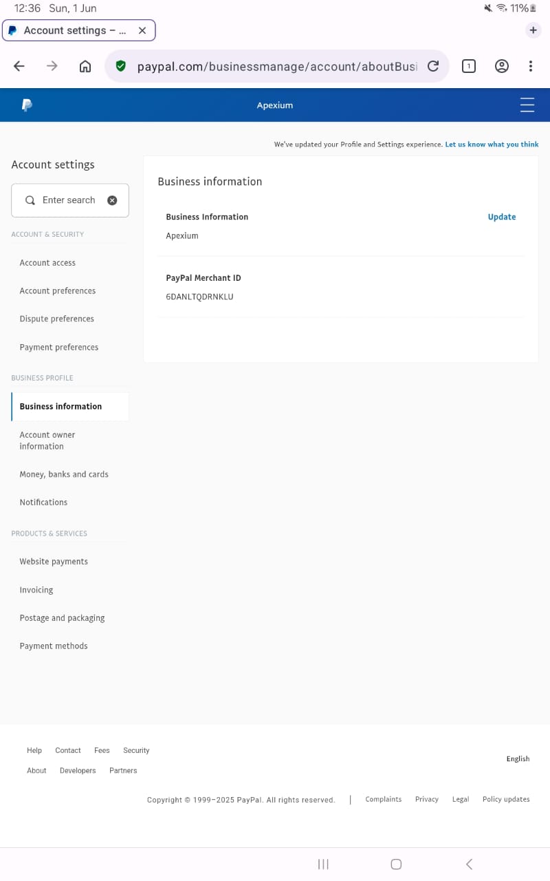 PayPal business account order|Person name: Lubna Imtiaz|bussiness name:apexium|date:jun-01-2025|