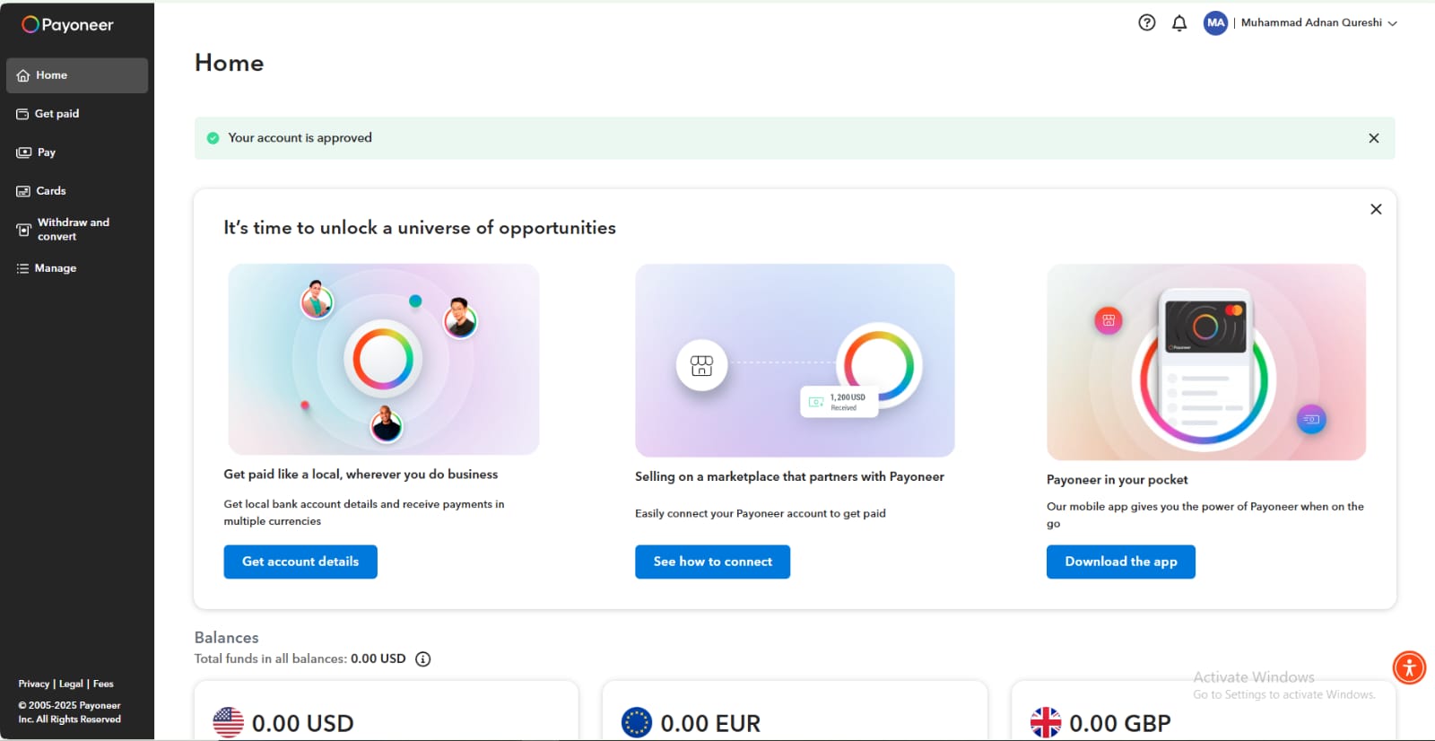 Payoneer personal account order|