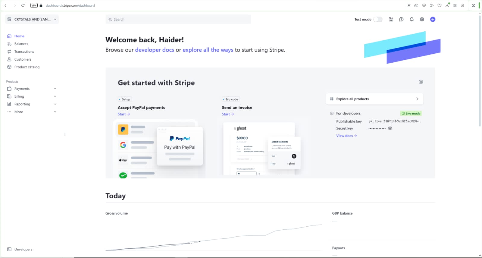 Stripe bussiness acount order|client name: Haider Ali|Business name: Crystal and Sand LTD|Date: Jun-09-2025