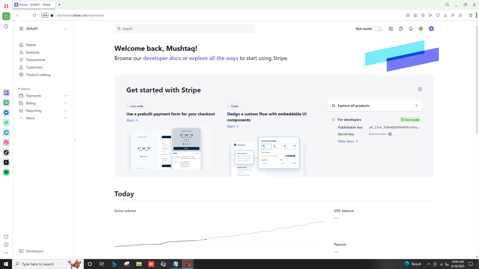 Stripe bussiness acount order|client name : kulsoom Mushtaq|Business name:Avaati|Date:Jun- 16-2025|