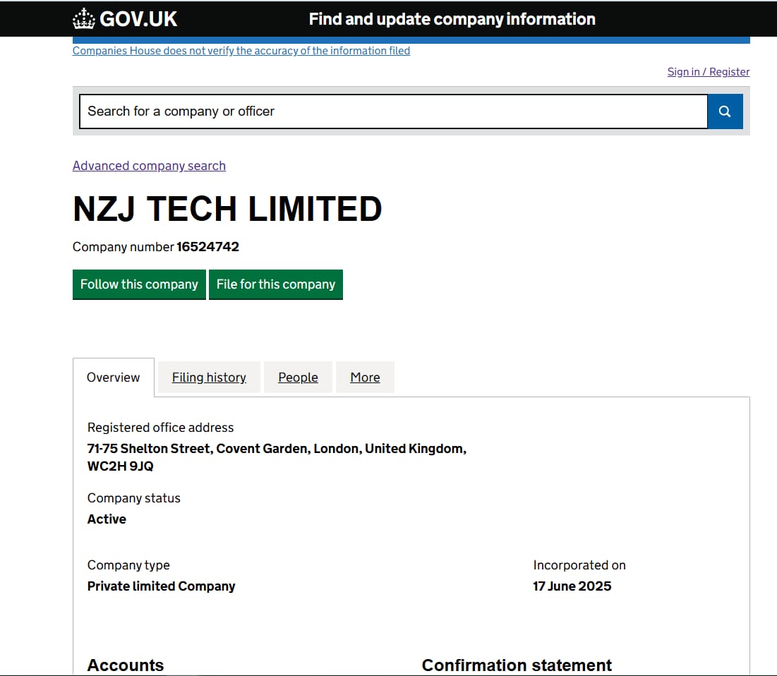 Company name: NZJ TECH LIMITED|Directors name : Mirza Hasnat Ali & Zeeshan|Nationality: Pakistani|
