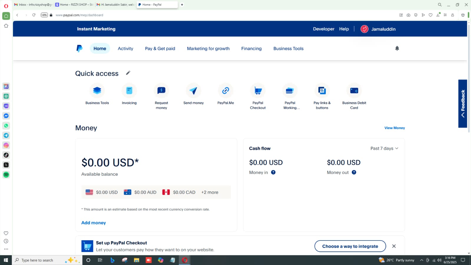 PayPal business account order|client name :Javed Ali |Business name: Instant Marketing |Date: Jun-25-2025|