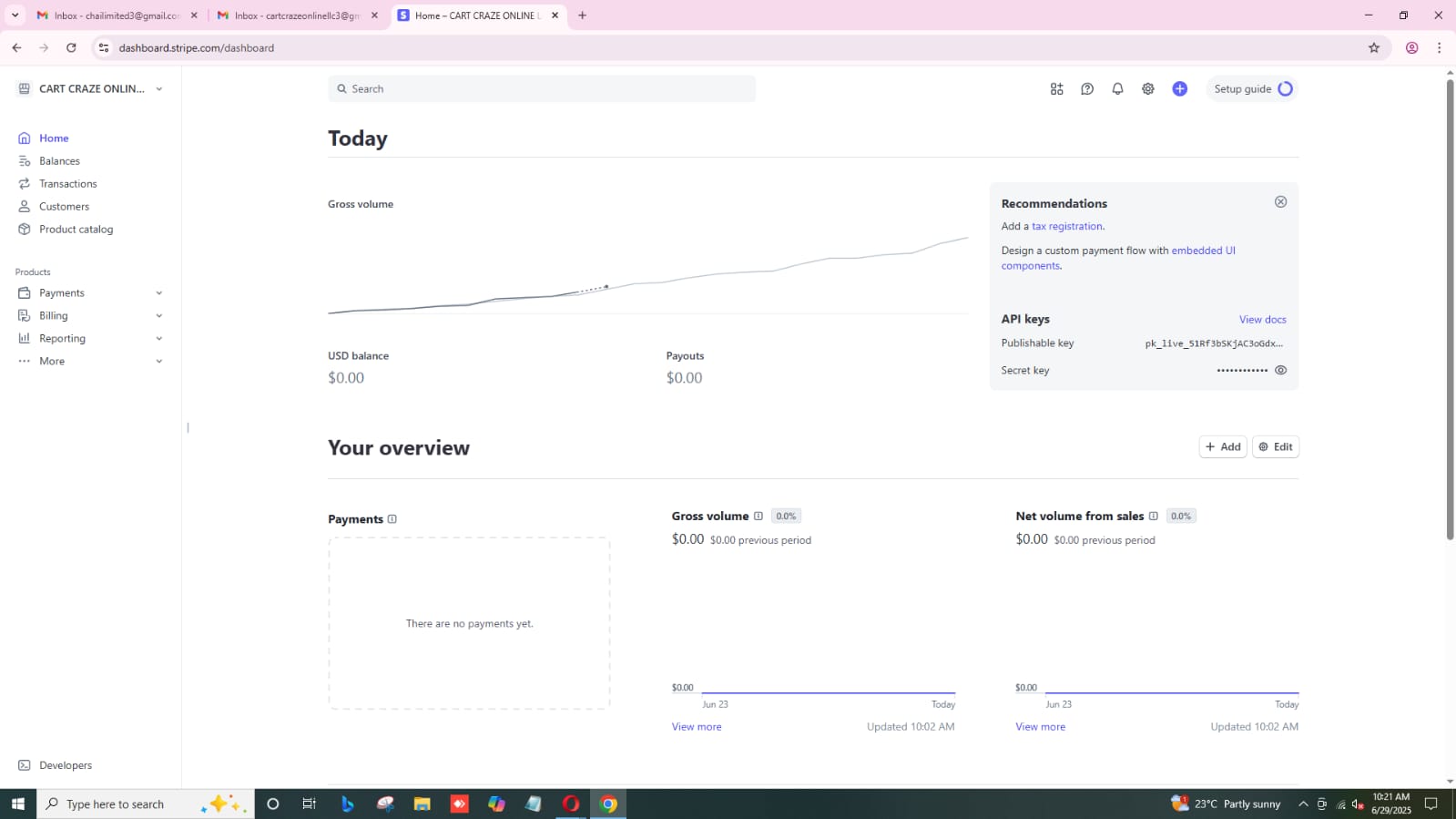 Stripe bussiness order|client name : Ali Haider|Business name: CART CRAZE ONLINE LLC| Date: Jun-29-2025|