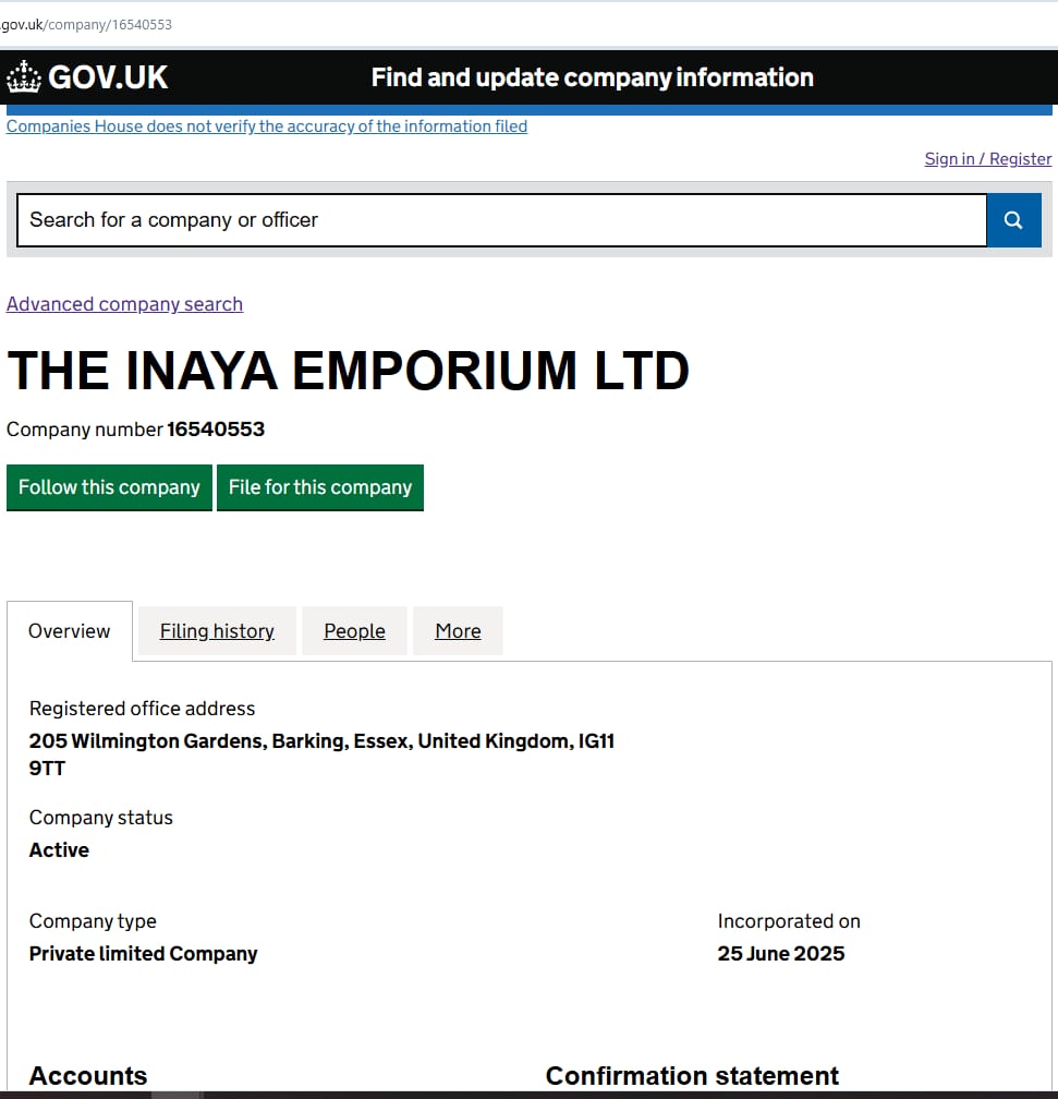 LTD Company Registeration order| Company name: THE INAYA IMPORIUM LTD| Directors : Mr. Muhammad Abdul Salik & Ishtiak Ahmed Sujan| Nationality: Bangladeshi|Date: June-25-2025|